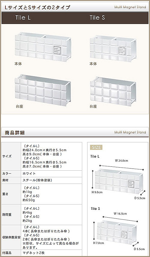 ▼ インテリアショップ roomy garden ( ルーミーガーデン )からのコメント ■magnet umbrella stand tile L / マルチマグネットアンブレラスタンド タイル Lサイズ 玄関ドアや冷蔵庫を収納スペースに変身させてくれる『 マルチマグネットスタンド タイル 』。
